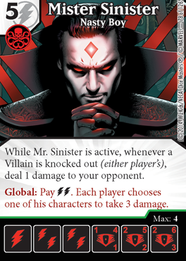 Professor X: The card looks good. It’s easy to recognize Charles Xavier. But what really seals the deal here, is how great it matches up with the global ability found on his common and rare versions. In the image we see Xavier either searching for or trying to communicate with his young X-Men. The ability on the versions I mentioned bring sidekick characters to the prep area for next turn, as if he is telepathically sending instructions to his X-Men. The image and ability just go hand-in-hand perfectly. This close up is perfect, because it’s not that his face is the central point of interest, it’s his mind.