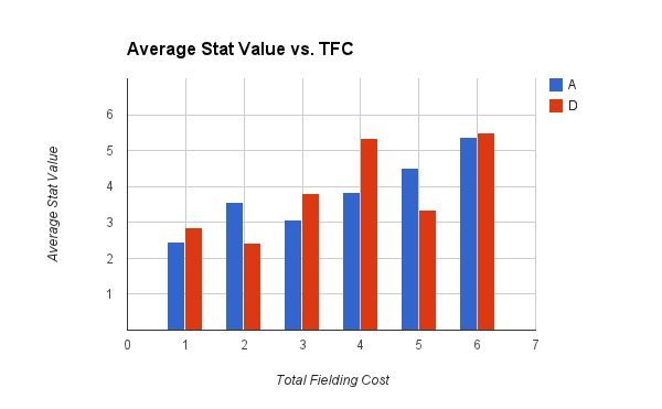In AvX, stats were pretty straightforward: as fielding costs increased, so did stats, and defense was usually a little higher than offense. This has changed in UXM: